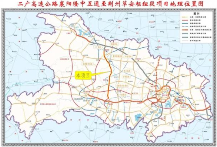 二广高速公路是国家高速公路网中南北向的骨干通道之一,其襄阳至荆州段北接中原城市群,南连长江经济带,是湖北省“九纵五横四环”高速公路骨架网的核心纵轴,承担着极其繁重的过境交通和区域交通功能。随着区域经济社会持续快速发展,现有四车道标准已难以满足日益增长的交通需求,部分路段在高峰时段拥堵现象较为突出,实施改扩建势在必行。